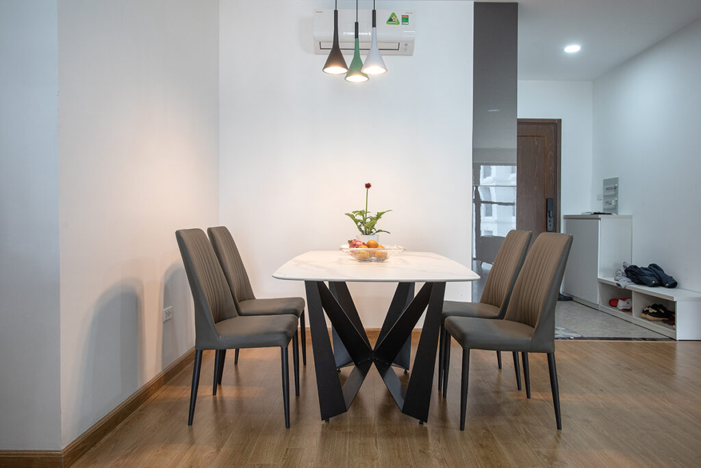 Kệ TV mặt đá marble sang trọng với khung mạ inox mạ titian vô cùng chắc chắn. Sự kết hợp hoàn hảo của set sofa bàn kệ kiến tạo nên không gian sống vẻ sang trọng thời thượng đậm chất Âu cho phòng khách nhà chị Thương.